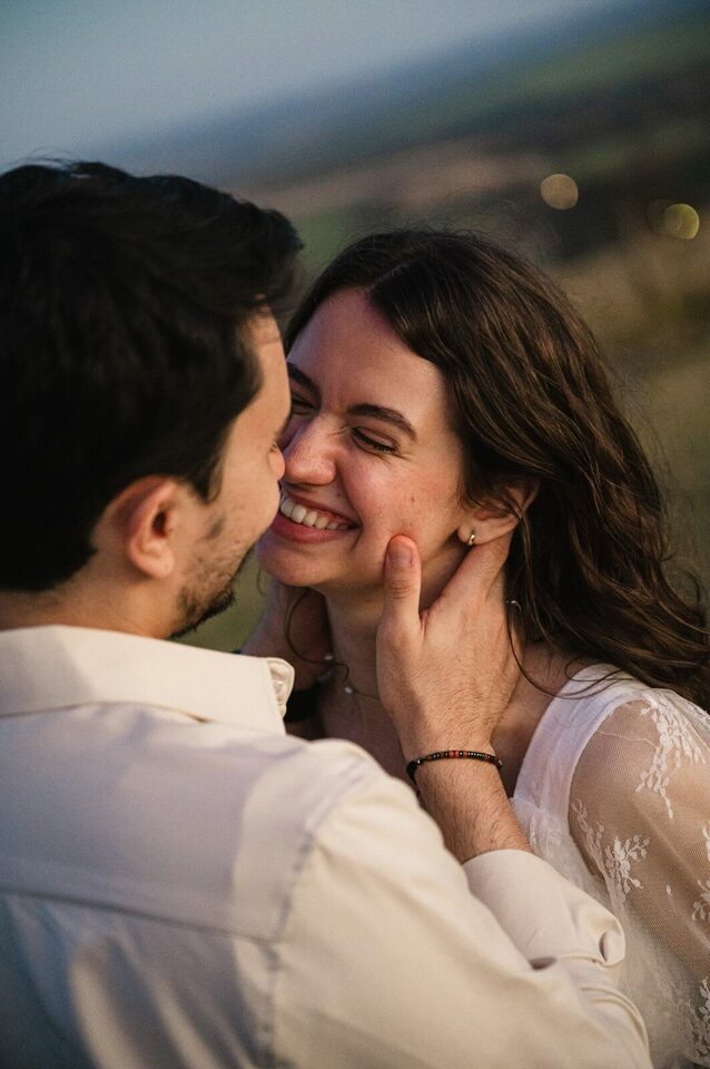 Começamos sem pressa, com uma conversa. Assim, vocês ficam mais à vontade e fotos incríveis simplesmente acontecem. Fiquem tranquilos que até os mais tímidos sempre se soltam com brincadeiras, risadas e beijos na bochecha.